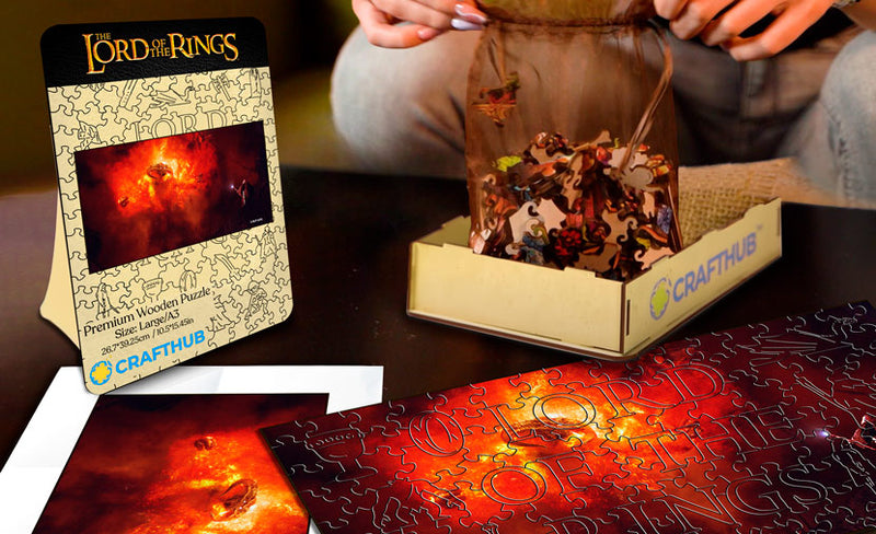 Con ilustraciones original directo de la fuente cinematográfica de la épica saga, esta serie de rompecabezas celebra la unión de los auténticos visuales de ‘El Señor de los Anillos’ con el arte más fino en la creación de rompecabezas.