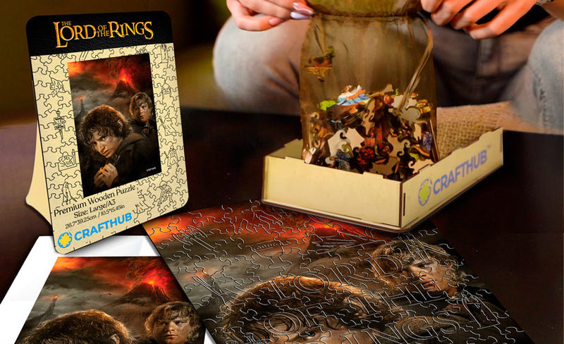 Con ilustraciones original directo de la fuente cinematográfica de la épica saga, esta serie de rompecabezas celebra la unión de los auténticos visuales de ‘El Señor de los Anillos’ con el arte más fino en la creación de rompecabezas.