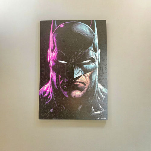 Pegamos el rompecabezas porque es muy hermoso y lo pusimos en la pared de mi hijo. Es un gran fanático de Batman.
