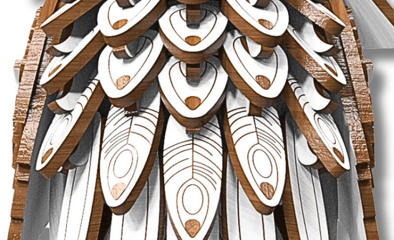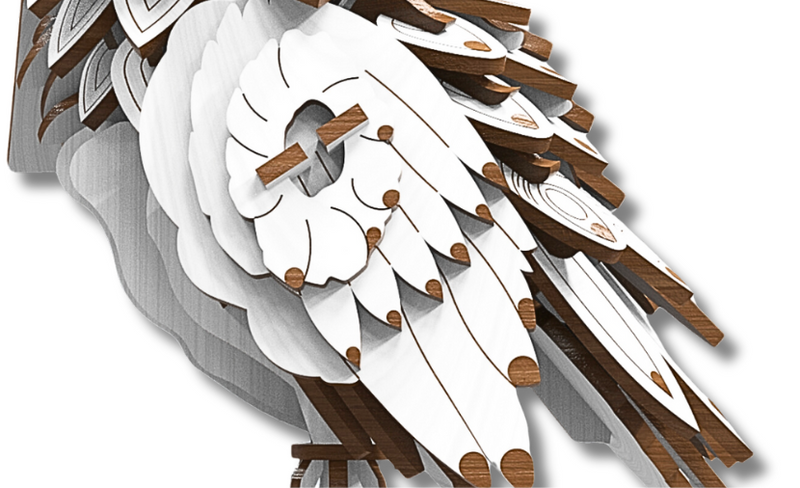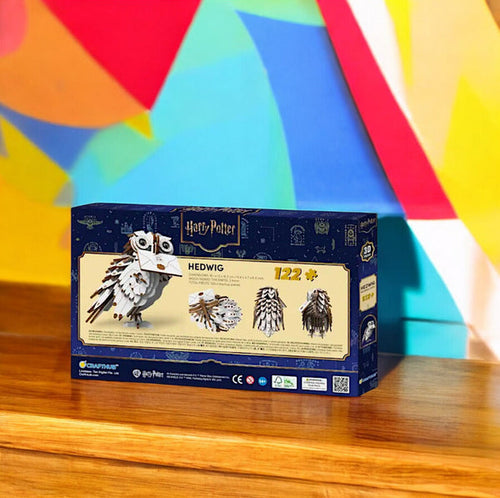 Las piezas en capas replican las plumas de Hedwig, lo que añade textura y profundidad realistas a su cuerpo.
