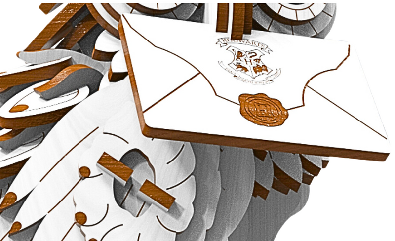 Los patrones intrincados en las alas y el cuerpo capturan la disposición icónica de las plumas de Hedwig, lo que la hace fiel a la película.