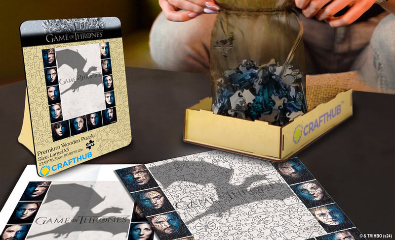 Esta serie de rompecabezas, que incluye ilustraciones originales extraídas directamente del material cinematográfico de la saga épica, celebra la unión de las imágenes auténticas de "Juego De Tronos" con el mejor arte en la fabricación de rompecabezas.
