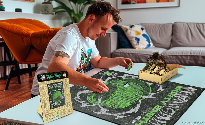Elaboradas con madera de primera calidad y cortadas con láser con la precisión de 0,3 mm de un científico loco, cada pieza encaja con una perfección satisfactoria. Hechas para aquellos que prosperan en lo caótico y lo extraño, al igual que las aventuras de Rick y Morty.