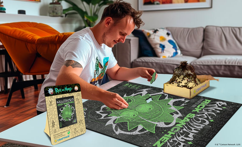 Elaboradas con madera de primera calidad y cortadas con láser con la precisión de 0,3 mm de un científico loco, cada pieza encaja con una perfección satisfactoria. Hechas para aquellos que prosperan en lo caótico y lo extraño, al igual que las aventuras de Rick y Morty.