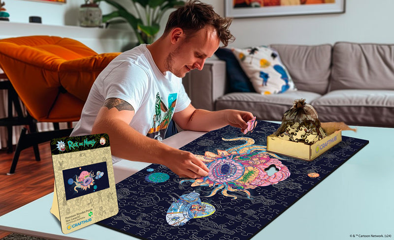 Elaboradas con madera de primera calidad y cortadas con láser con la precisión de 0,3 mm de un científico loco, cada pieza encaja con una perfección satisfactoria. Hechas para aquellos que prosperan en lo caótico y lo extraño, al igual que las aventuras de Rick y Morty.