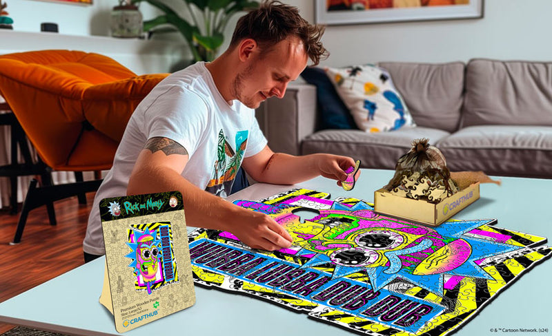 Elaboradas con madera de primera calidad y cortadas con láser con la precisión de 0,3 mm de un científico loco, cada pieza encaja con una perfección satisfactoria. Hechas para aquellos que prosperan en lo caótico y lo extraño, al igual que las aventuras de Rick y Morty.
