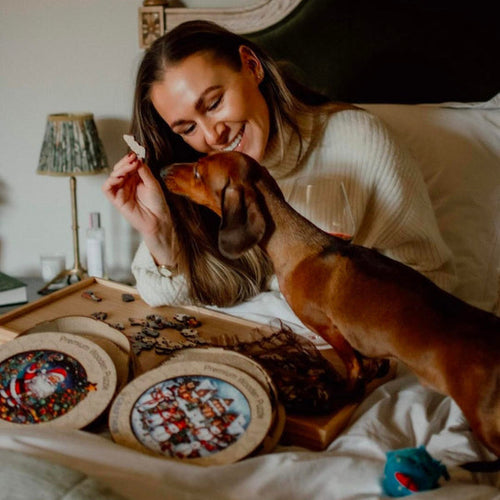 Las piezas son de madera y cortadas con láser en formas e imágenes únicas. Las piezas son interesantes y divertidas, incluso antes de empezar a armar el rompecabezas. El rompecabezas en sí es vibrante y resistente.