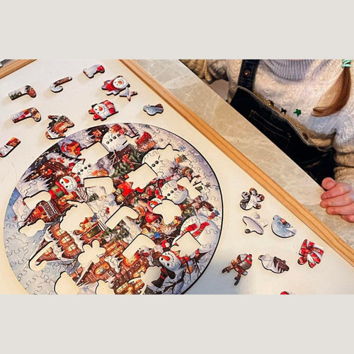 A medida que vayas armando esta escena invernal, descubrirás formas encantadoras como alegres muñecos de nieve, dulces caramelos, calcetines cómodos, regalos envueltos y estrellas guía. Cada forma agrega una pizca de magia festiva a tu viaje de rompecabezas.