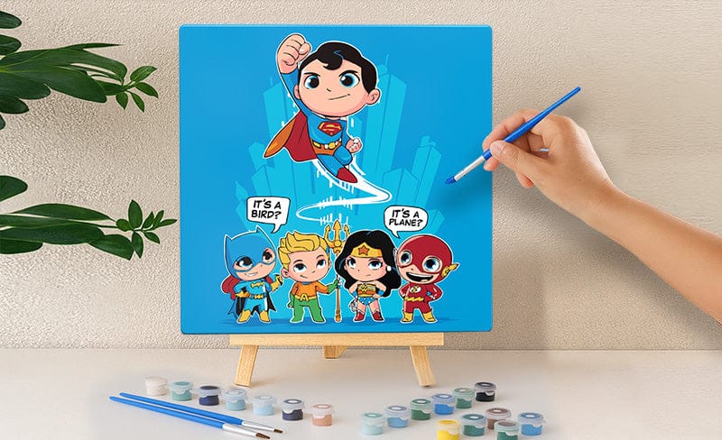 Todos nuestros kits de pintura Canvas by Numbers incluyen todo lo que necesitas: un lienzo de mezcla de lino finamente tejido, un juego de pintura acrílica premezclada, cuatro pinceles de madera de calidad para artistas, una hoja de referencia del lienzo y una útil guía rápida de "Introducción".